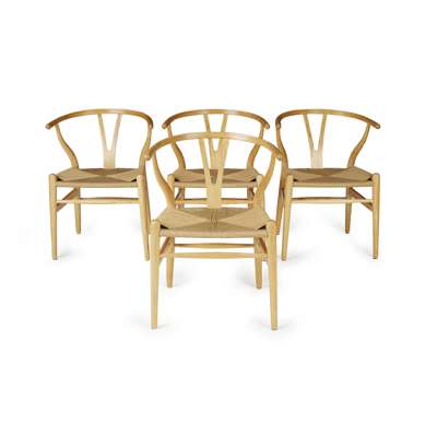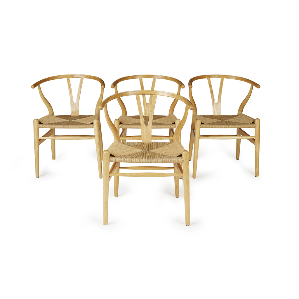 SET OF FOUR OAK 'Y' WISHBONE CHAIRS, MODEL NO. 24, DESIGNED 1950.
