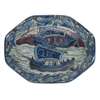 of eight-sided form painted in blue, green, pink and silver lustres with a galleons in full sail, painted verso with a skate and monogram mark