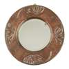 of circular form, the hammered surface with repoussé stylised flower stems, enclosing a bevelled glass mirror plate