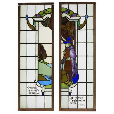 PAIR OF ARTS & CRAFTS STAINED GLASS PANELS, CIRCA 1900