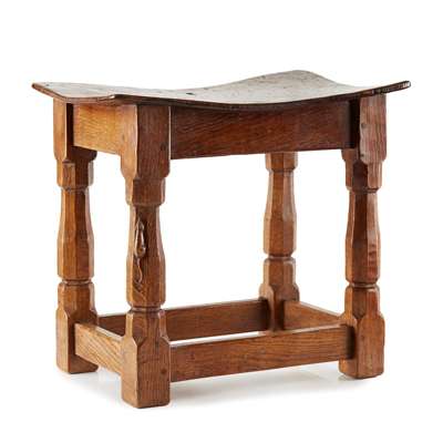 OAK AND BURR OAK STOOL, CIRCA 1940