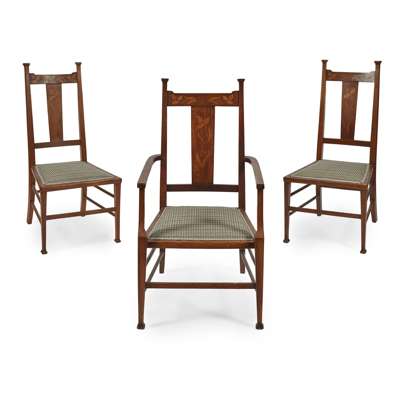 including a single armchair and two side chairs, each with upholstered panel seats on square tapering legs (3)