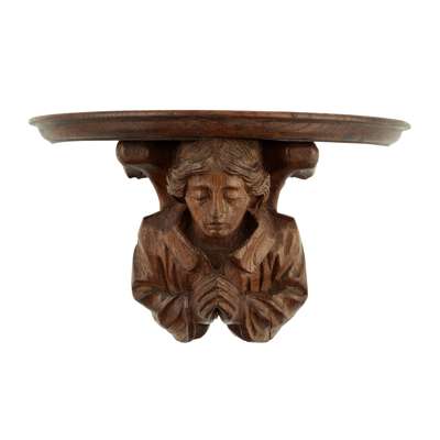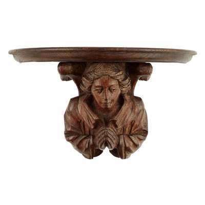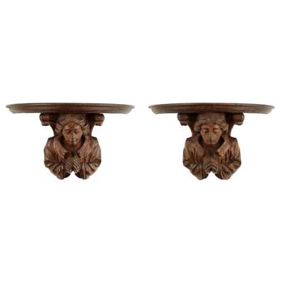 PAIR OF ARTS AND CRAFTS CARVED OAK WALL BRACKETS, EARLY 20TH CENTURY