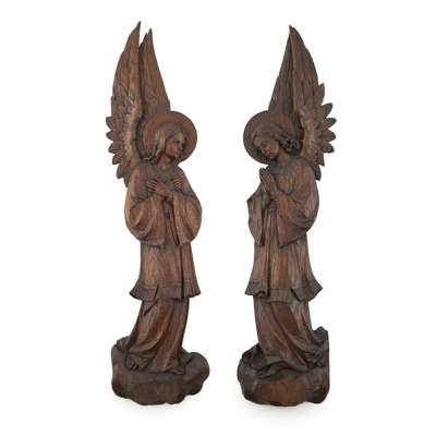 PAIR OF CARVED OAK ANGELS, CIRCA 1900