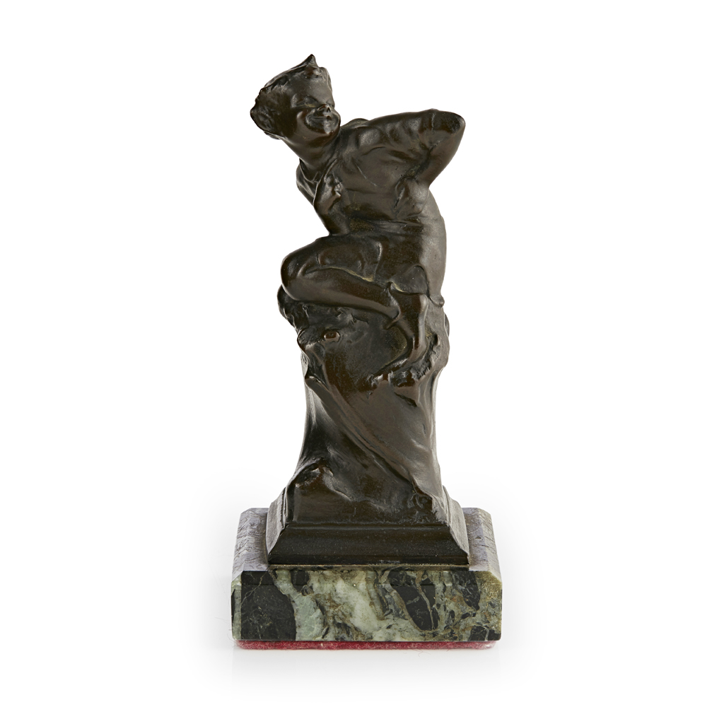 bronze, signed in the bronze J.M. RIDING/ 1915, raised on a green marble plinth