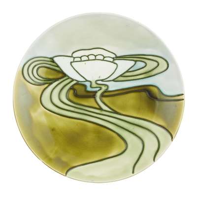 decorated with a stylised flowerhead on a green ground, with impressed and printed maker's marks MINTONS LTD/ B 5