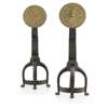 PAIR OF GOTHIC REVIVAL CAST IRON AND BRASS ANDIRONS, CIRCA 1865