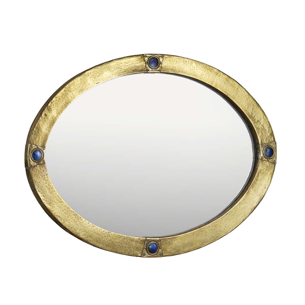 ENAMELLED AND BRASS WALL MIRROR, CIRCA 1900