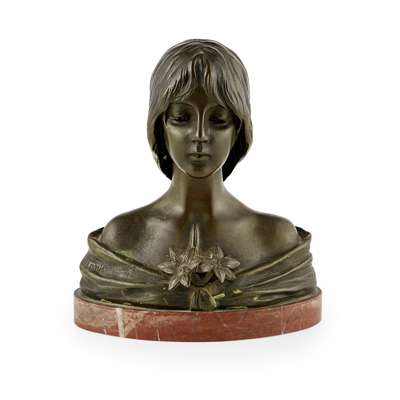 ART NOUVEAU BRONZE BUST OF A LADY, CIRCA 1890