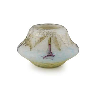 acid etched and enamelled with a frieze of Angel's Trumpet flowers, highlighted with gilt, etched maker's marks to base DAUM/ NANCY