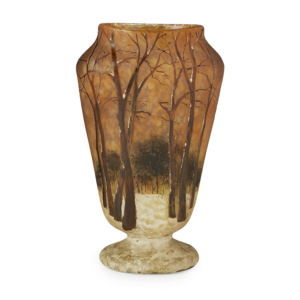 'WINTER SCENE' GLASS VASE, CIRCA 1910