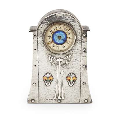 ART NOUVEAU SILVER AND ENAMEL MANTEL CLOCK, 1906