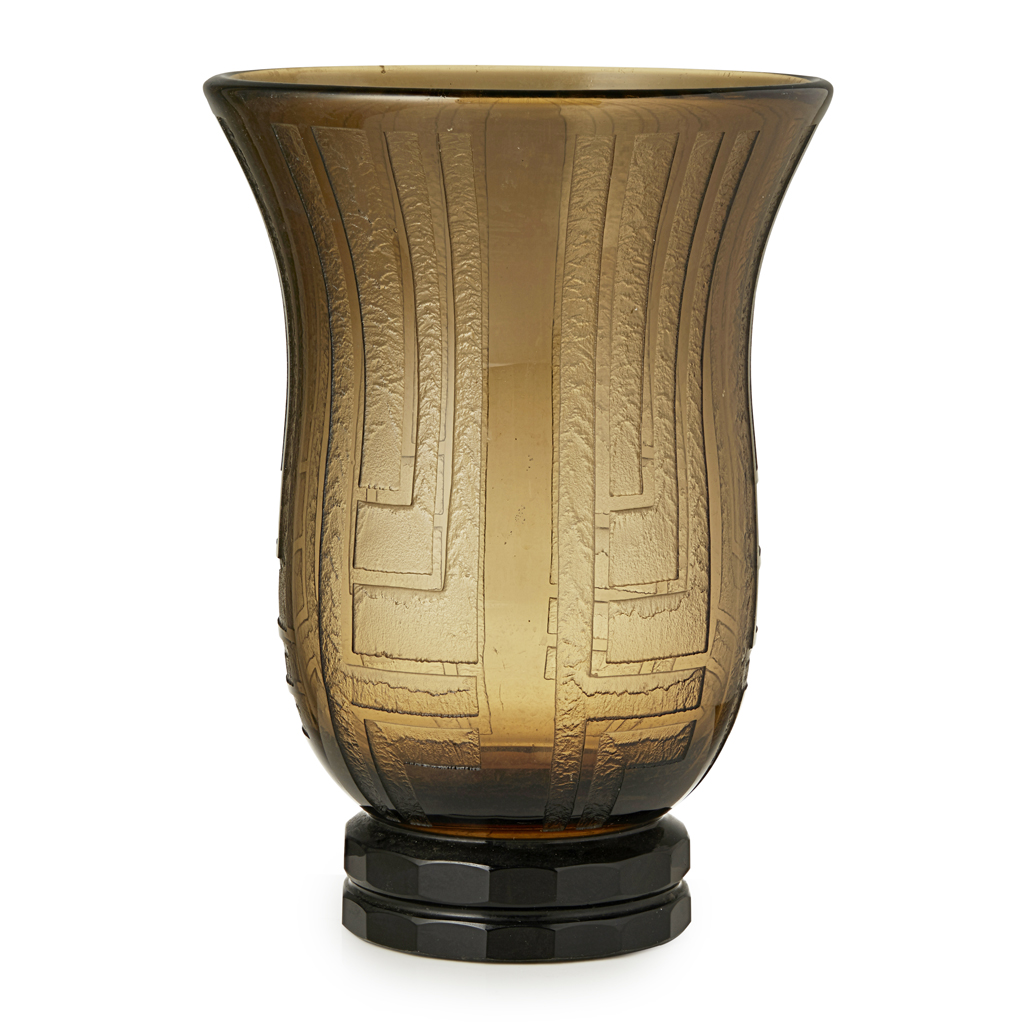 ART DECO SMOKED GLASS VASE, CIRCA 1930S