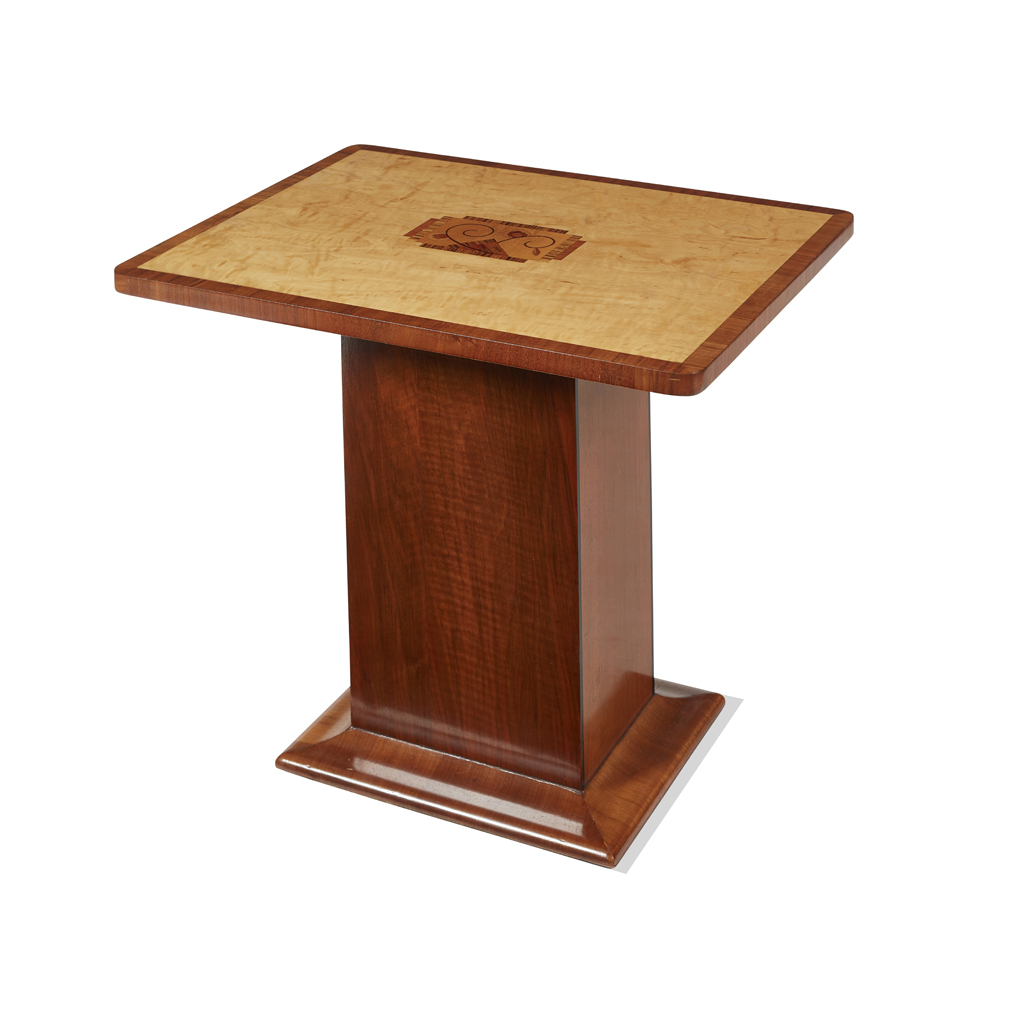 WALNUT & MAPLE INLAID SIDE TABLE, CIRCA 1925