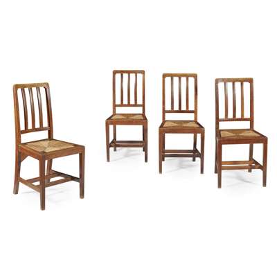 each with bar backs above drop-in rush seats on square tapering legs linked by stretchers (4)