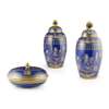 with printed maker's marks, gilt Egyptian seal marks and painted pattern numbers (one cover with damages), 27cm high; together with a WILTSHAW & ROBINSON LTD., CARLTON WARE 'TUTANKHAMUN' COVERED BOWL, No. 2710, printed maker's marks, gilt pattern number, 18cm diameter (3)