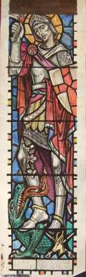 Anonymous Commission: St George and the Dragon, with inscription 'In Memory of Major General Evered Poole', 157cm x 42cm, possibly drawn by Carrick Whelan