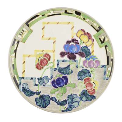 decorated with stylised poppies on a geometric ground, painted marks RA/ BOUGH/ O13