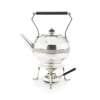 the kettle with ebonised handle and reeded support with serrated leaf terminal, bears maker's mark H&H/ 2966, the base with line decoration and separate burner, bearing registration mark for May 1878