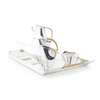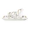 comprising a COFFEE POT, 22cm high; a TEA POT, 30.5cm long; a CREAMER, 12cm high; a SUGAR BOWL, 11cm wide; and a SERVING TRAY, 48cm across, each with impressed maker's marks GALLIA/ FRANCE/ PROD. CHRISTOFLE (5)