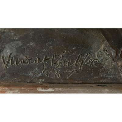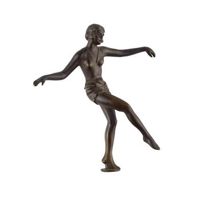 signed and dated in the bronze VINCENT BUTLER/ 1987, 18cm x 16cm; and an ART DECO SPELTER FIGURE, of a dancer, unmounted, 12.5cm high (2)