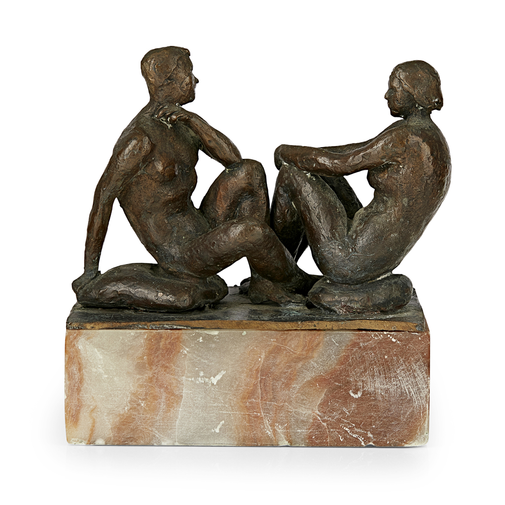 BRONZE FIGURE GROUP, DATED 1987