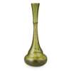 with an elongated neck and bulbous body, the green glass with opaque swirls and aventurine inclusions