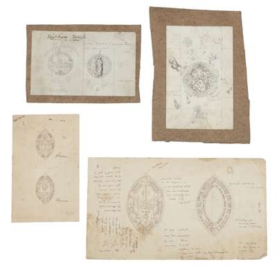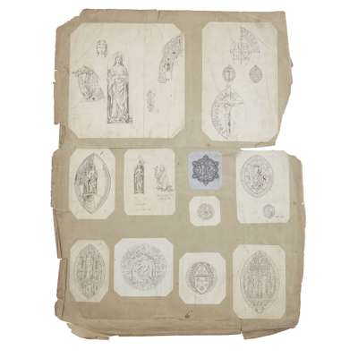 THIRTEEN GREEK REVIVAL PAINTED GLASS PANELS, CIRCA 1880