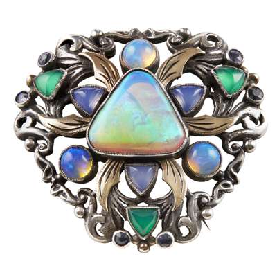 ARTS & CRAFTS SILVER AND APPLIED COPPER CROSS PENDANT, LONDON 1965