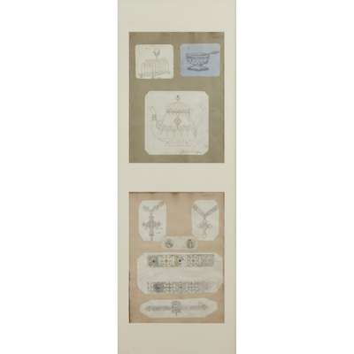 COLLECTION OF ELEVEN DRAWINGS OF GOTHIC REVIVAL JEWELLERY AND WORKS OF ART