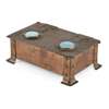 with hammered finish, and decorative strap hinges set with Ruskin cabochon plaques