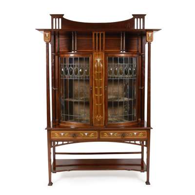 ART NOUVEAU MAHOGANY AND INLAID DISPLAY CABINET, CIRCA 1900