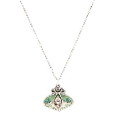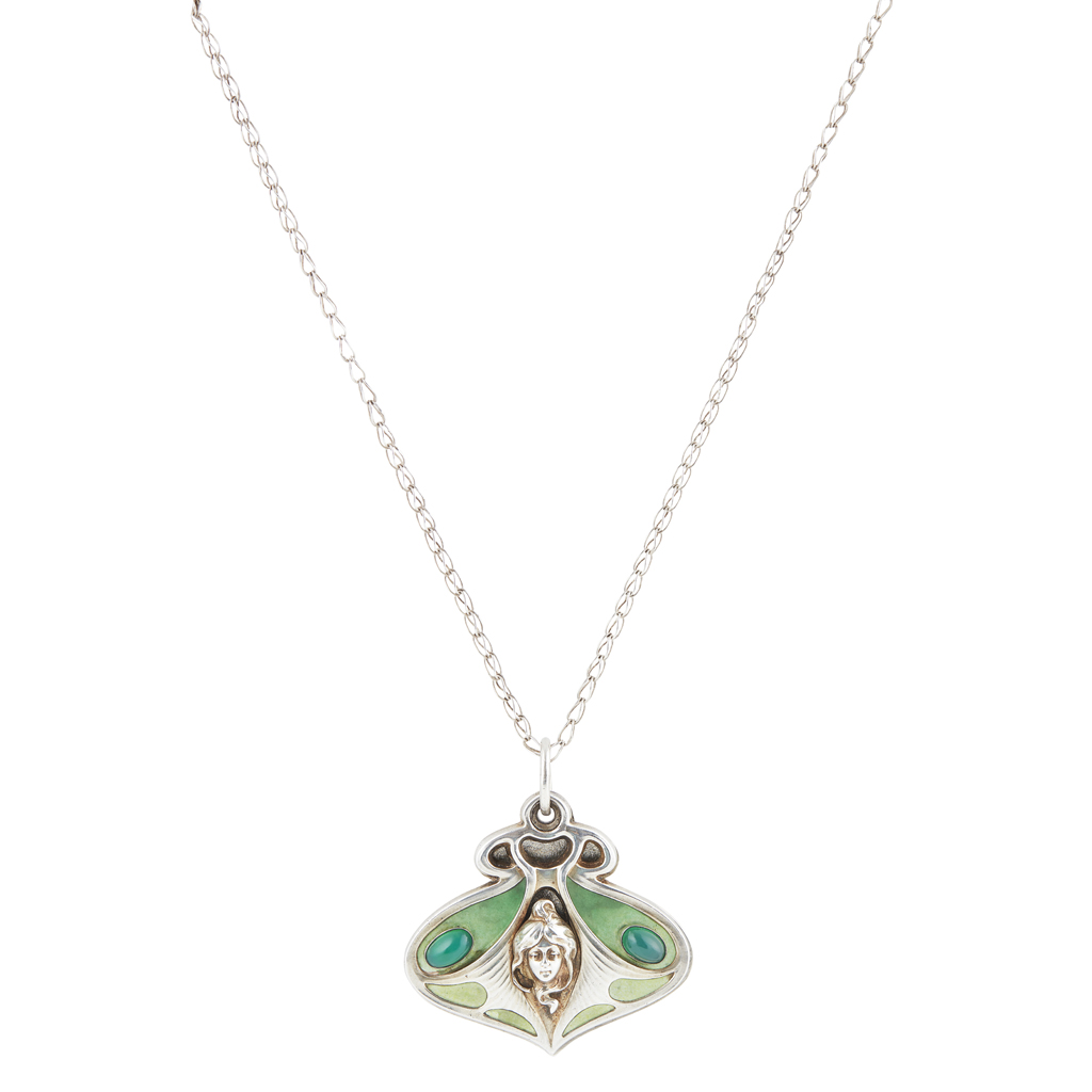 ART NOUVEAU WHITE METAL AND ENAMEL PENDANT LOCKET, CIRCA 1900