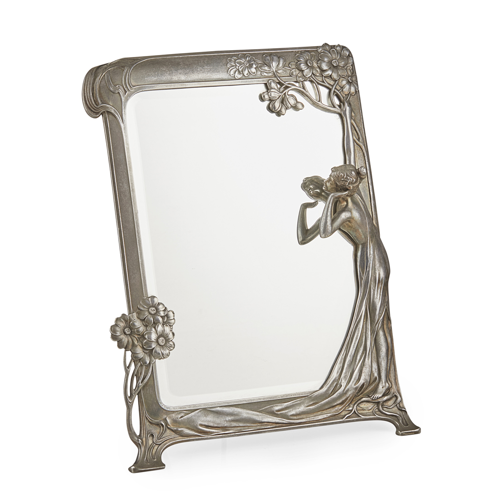 ART NOUVEAU ELECTROPLATED 'ECHO' STRUT MIRROR, CIRCA 1905