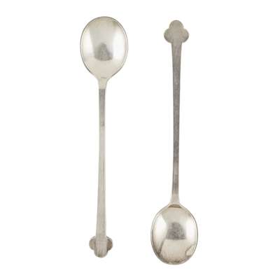 with oval bowl and long handle with trefoil finial, stamped to the reverse MISS CRANSTON'S (2)