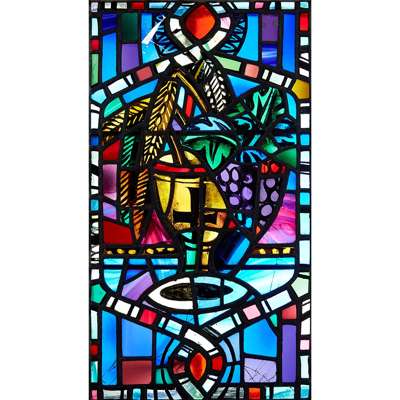 STAINED AND LEADED GLASS PANEL, CIRCA 1954