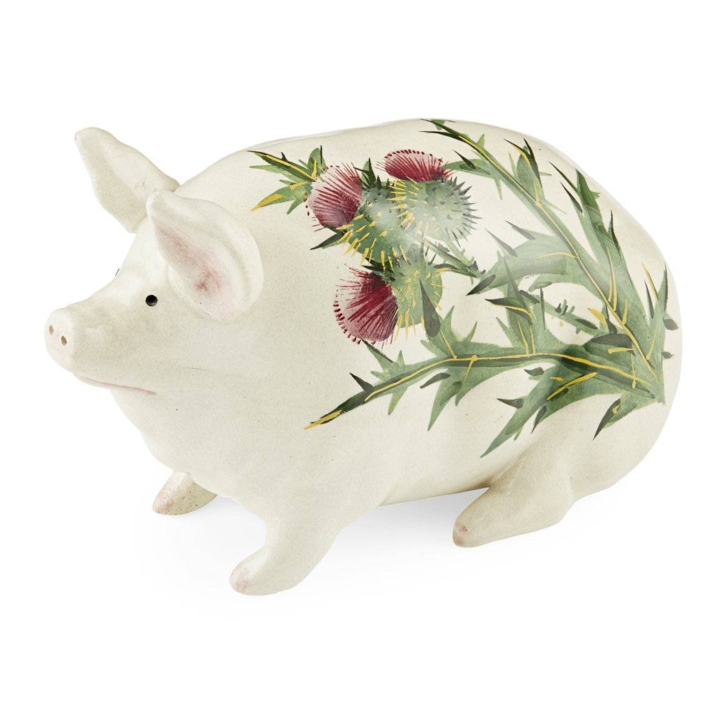SMALL 'THISTLES' PATTERN PIG FIGURE, CIRCA 1900