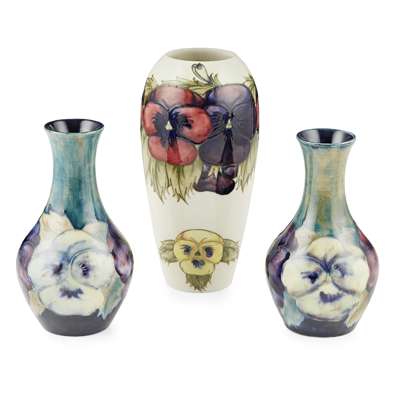 PAIR OF 'PANSIES' PATTERN BALUSTER VASES, CIRCA 1930