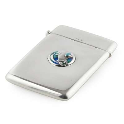 SILVER AND ENAMEL CALLING CARD CASE, BIRMINGHAM 1906