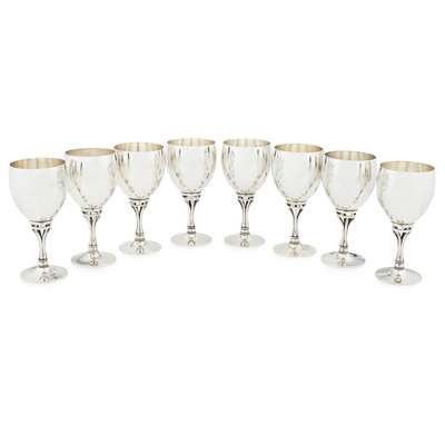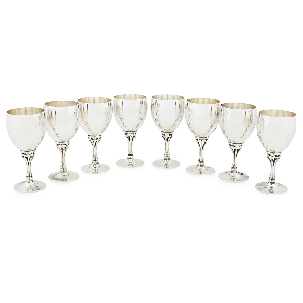 SET OF EIGHT LARGE STERLING SILVER GOBLETS, CIRCA 1949