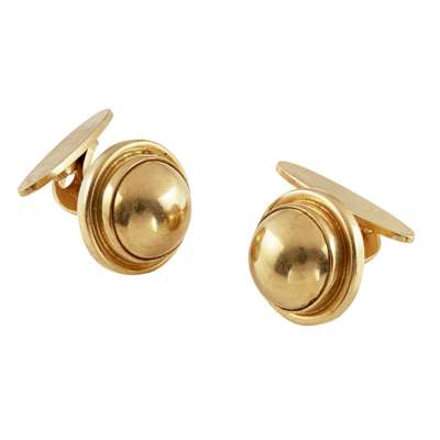 each of circular cabochon design, stamped maker's marks GJLD/ GEORG JENSEN/ 750/ 18K/ 10 44D (2)
