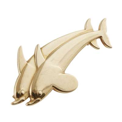 designed as two leaping dolphins, stamped maker's marks GEORG JENSEN/ 750 18K/ 1317, with import marks for London, 1964