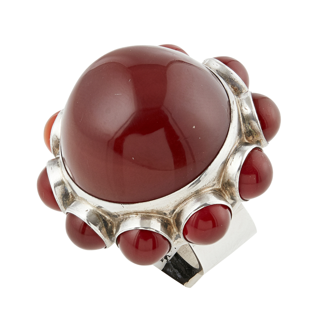 STERLING SILVER AND CORNELIAN SET RING, 1960'S