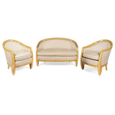 ART DECO BEECH-FRAMED DRAWING ROOM SUITE, CIRCA 1930