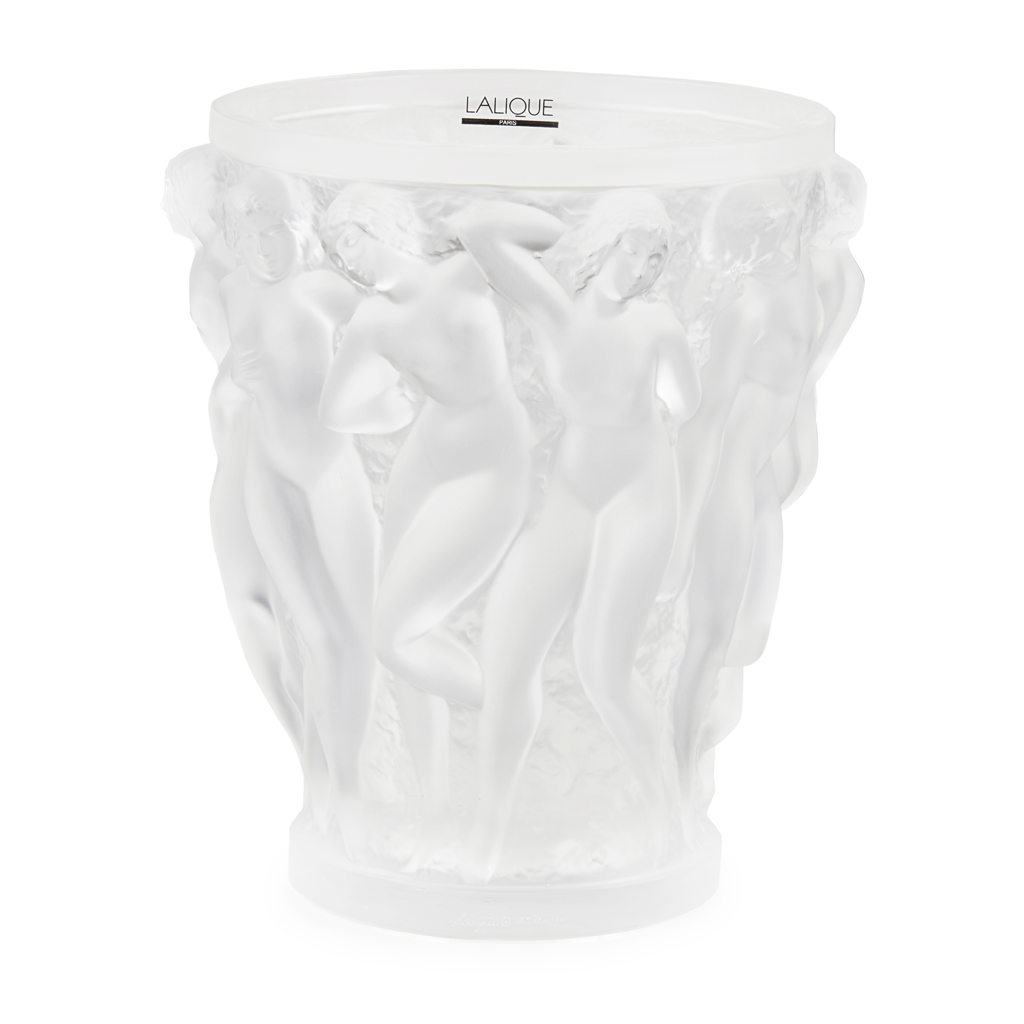 the original design introduced in 1927, the tapered body moulded with a frieze of female nudes, with etched script mark LALIQUE/ FRANCE with registered trade mark