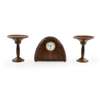 ART DECO WALNUT OVERMANTEL GARNITURE, CIRCA 1930