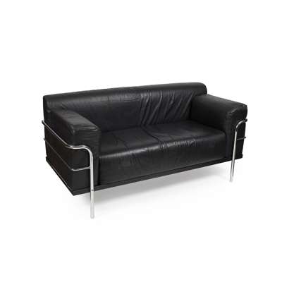 LEATHER AND CHROMIUM PLATED SOFA, MODERN