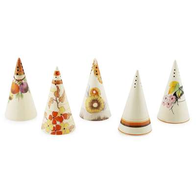 FIVE CONICAL SUGAR SIFTERS, 1930'S