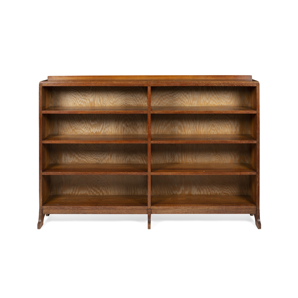 the ledge back above an arrangement of open shelves, bears maker's label to rear HEAL & SON LTD.