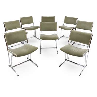 ROSEWOOD AND CHROMIUM PLATED DINING SUITE, CIRCA 1970